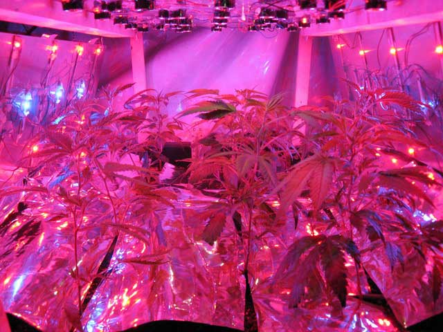 18-8-2009, All plants started to grow very nicely, looks like they are already bushier than without the sidepanels. The Leds on the side panels have no reflectors or lenses, this is done because it gives a better mixture of the different light colors and a more evenly distribution of the light. In a couple of days I will switch to flowering, 12 hours of light every day.